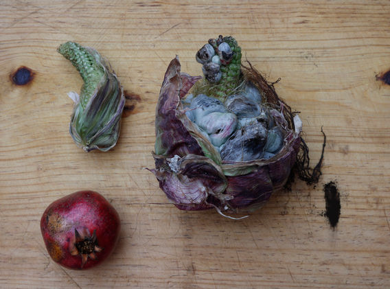 Una mañana de esas de lluvia, salí al jardín como en este tiempo lo hacía, observé una coloración diferente en la zona cicatrizada de un elote tierno que corté por inexperiencia.